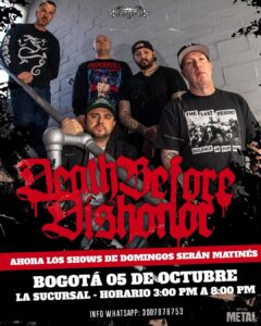 La reconocida banda de hardcore estadounidense Death Before Dishonor regresa a Colombia para una única fecha en Bogotá, el próximo domingo 5 de octubre en La Sucursal. Una tarde intensa que promete lo mejor del hardcore mundial en formato matiné.